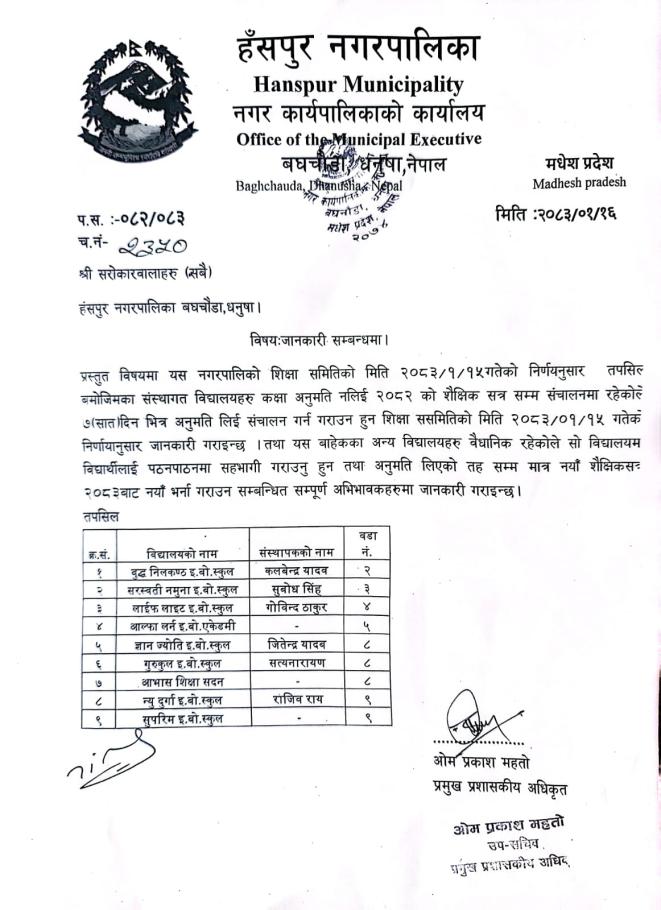 जानकारी सम्बन्धमा (संस्थागत विद्यालय सबै)